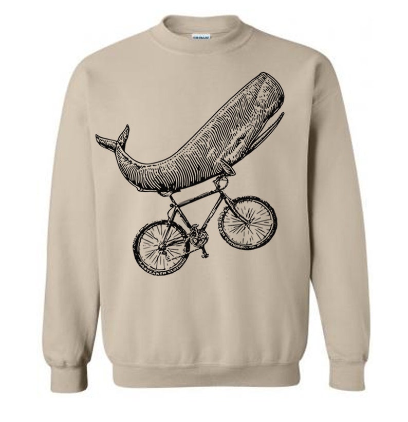 No, a whale does not need a bicycle. That much is true. But does a whale desire a bicycle? This fun sweatshirt tries to answer that very question.